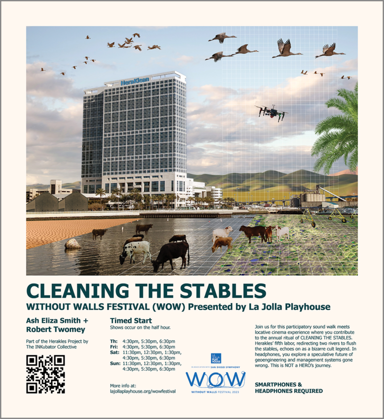 Cleaning the Stables is a participatory sound walk meets locative cinema experience. Herakles’ fifth labor, redirecting two rivers to flush the stables, echoes on as a bizarre cult legend. In headphones, participants explore a speculative future of geoengineering and management systems gone wrong.