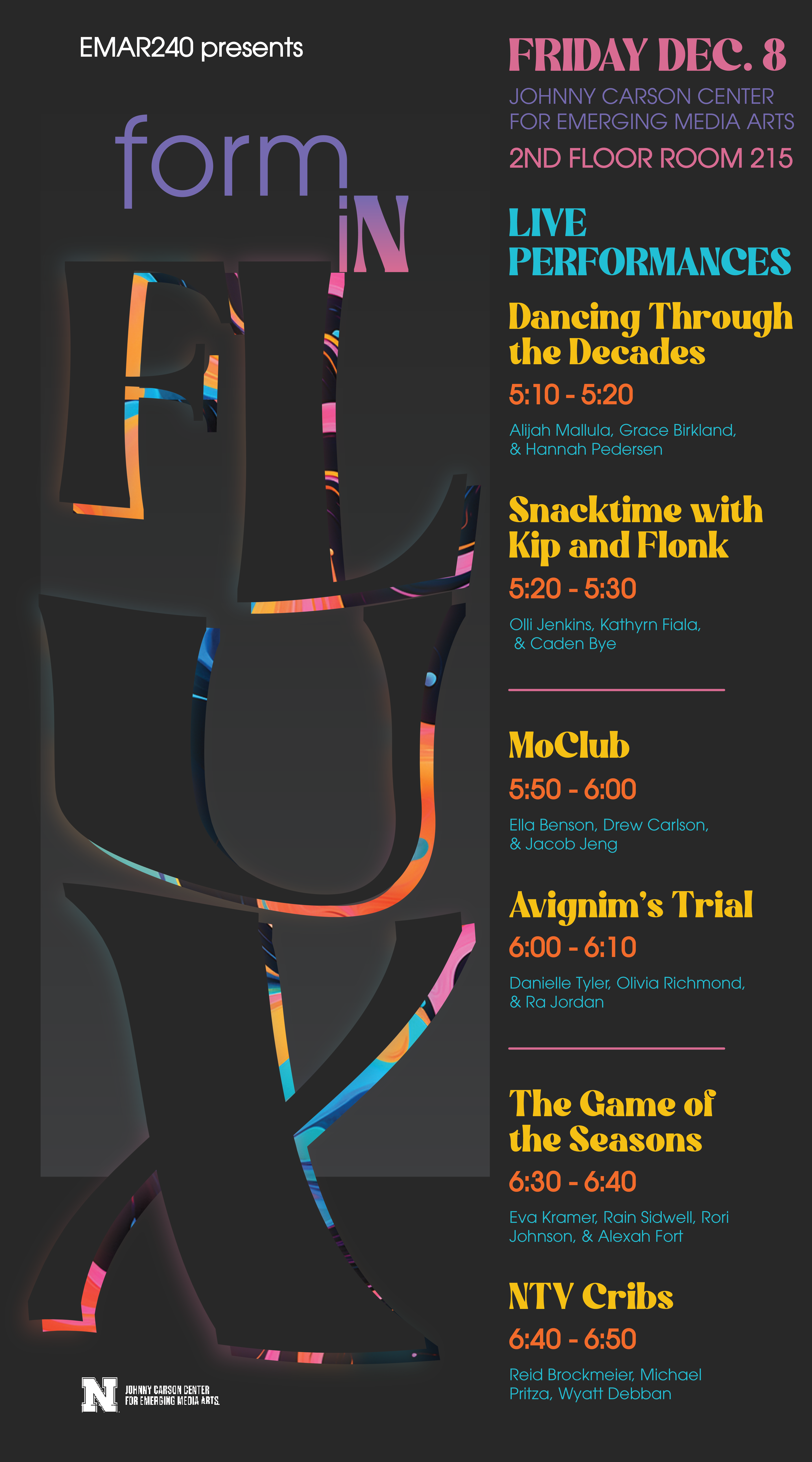 Worked closely with the Johnny Carson Endowed Director in Emerging Media Arts Megan Elliot, Director of Operations Megan McMasters, and faculty to create various graphics for the Johnny Carson Center for Emerging Media Arts.