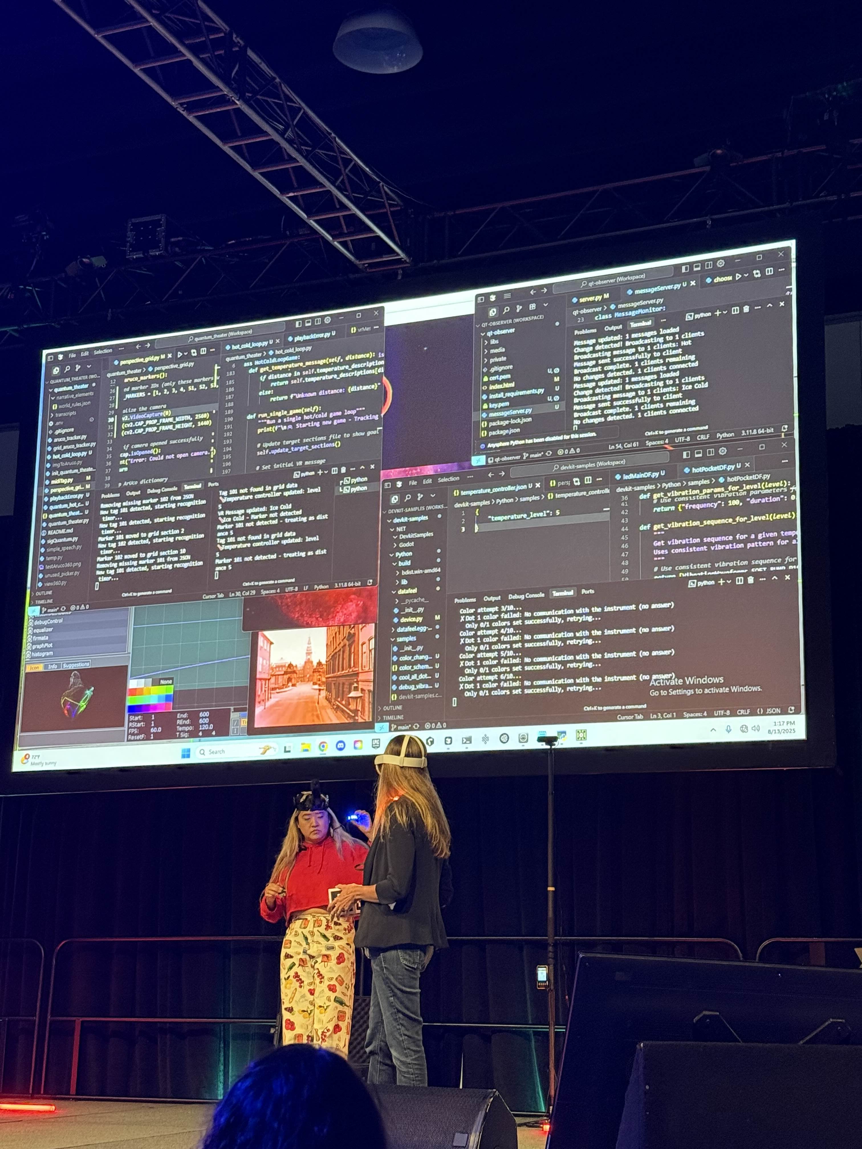 Developed the main visual language for the piece, as well as the TouchDesigner system to interact with the background visuals. Supported the writing, experience design, and co-led the logistical aspects of the piece.